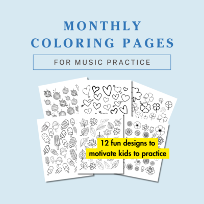 These fun, seasonal coloring pages keep young musicians motivated with a new theme each month.